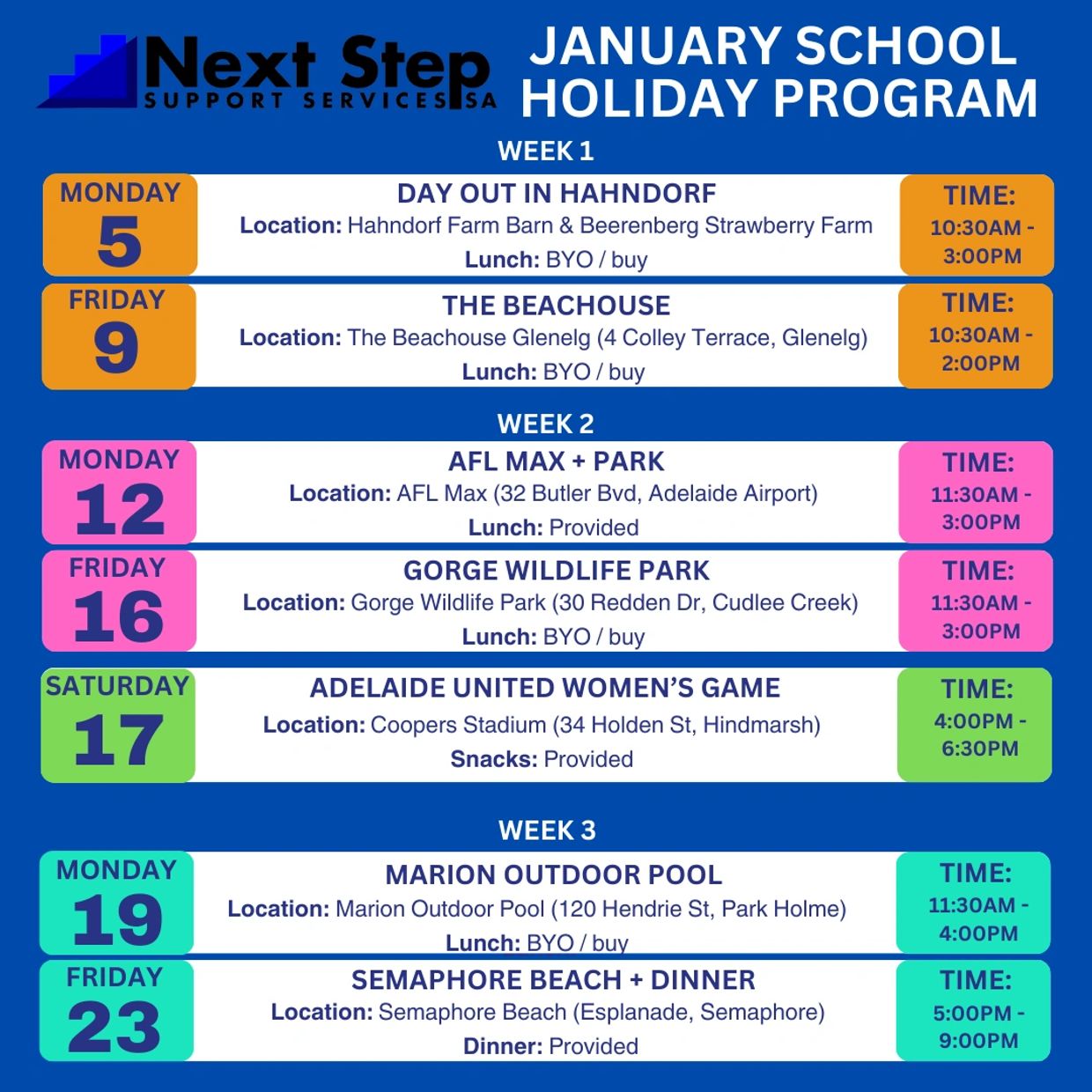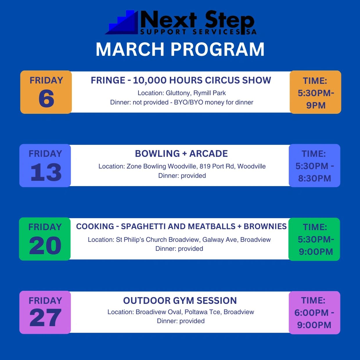 Here at Next Step Support Services SA, we aim to provide access to fun, meaningful group activities to enhance the lives of participants. We provide a range of activities allowing individuals to socialise with each other, work collaboratively, and develop a range of skills in a supportive and accepting environment.